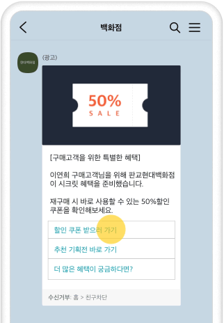 - 친구 추가 여부 관계 없이 휴대폰 번호 기준으로 발송 가능합니다.