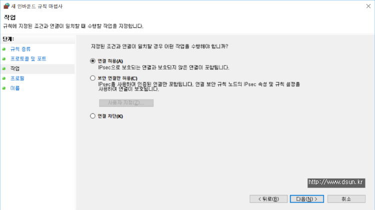 연결 허용(A)을 선택하고 다음(N) > 버튼을 클릭합니다.