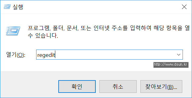 먼저 레지스트리(registry) 편집기를 실행하여 원격 데스크톱 연결 포트 번호를 변경해 보겠습니다. 윈도우키 + R로 실행창을 불러 옵니다. regedit를 입력해서 레지스트리 편집기를 실행 합니다.