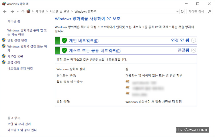 제어판의 Windows 방화벽에서 왼쪽에 고급 설정을 실행합니다.