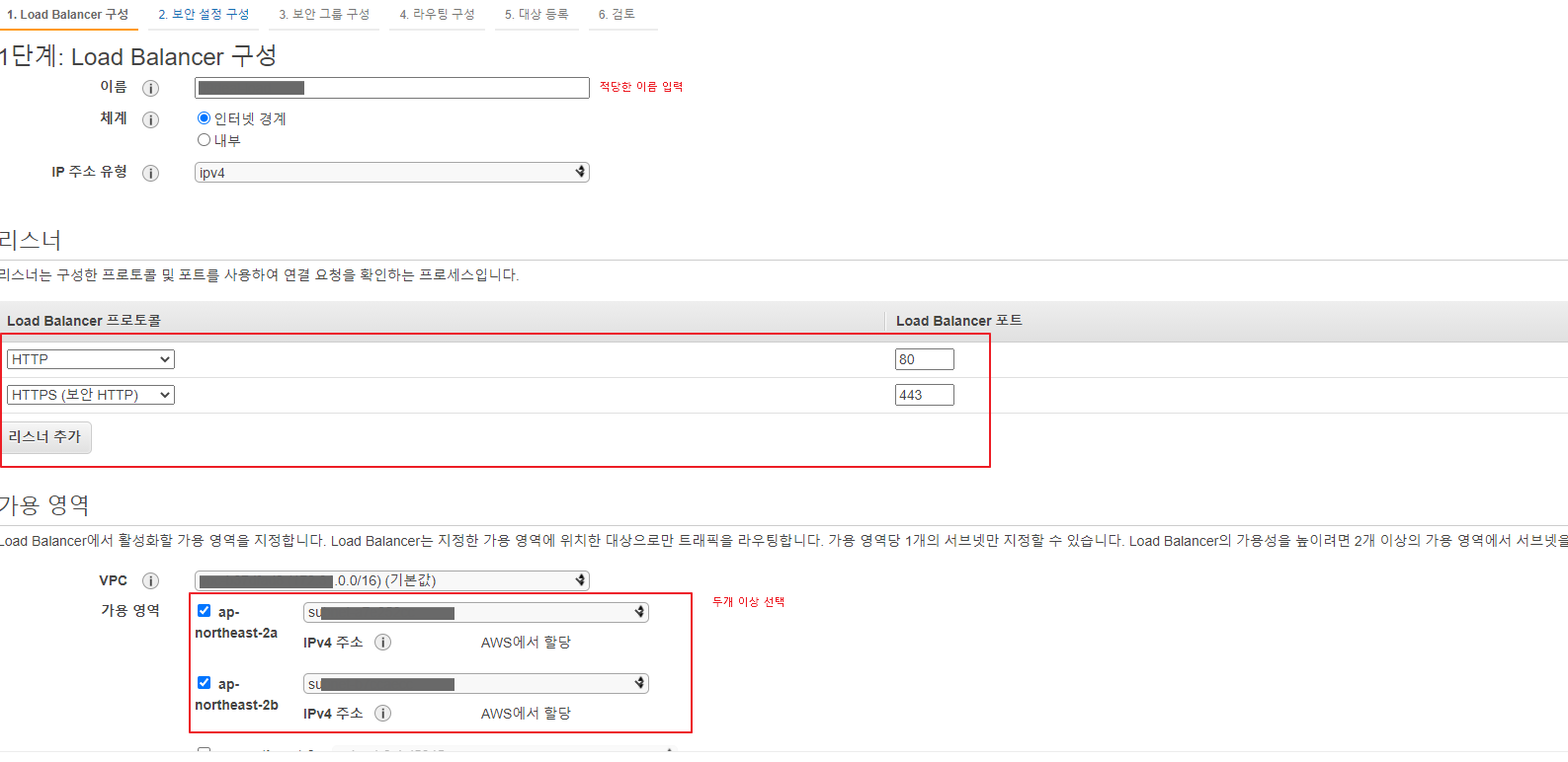 EC2 > 로드밸런싱 > 로드밸런서 에서 Load Balancer 생성