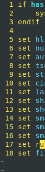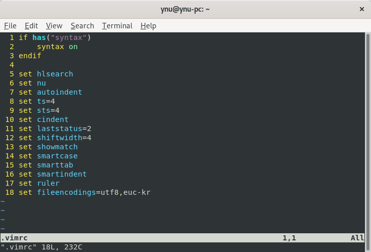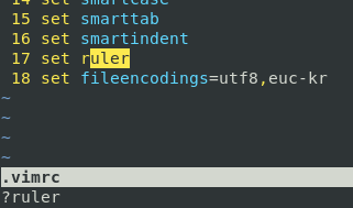 위와 같이 명령어를 입력하면 홈 디렉토리에 .vimrc가 생성되고 vi 편집기가 열릴 것이다.